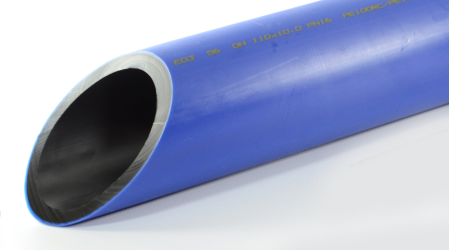 2.具有PE 100-RC尺寸集成保護層的三層管。管道由PE 100或PE 100-RC制成,并由PE 100-RC制成的內(nèi)外共擠保護層制成。
