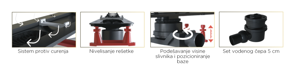 隨著新的設(shè)計(jì),我們kondenyovana支撐格柵和漏水回漏。粘合劑丁基膠帶捆綁作為系統(tǒng)泄漏的一部分。用于通過選擇一個(gè)不同的跳線設(shè)置流平取決于地磚的厚度篦漏極獨(dú)特的解決方案。16毫米與30mm通用的解決方案可調(diào)節(jié)高度的底座和旋轉(zhuǎn)360度之間。由于通用的解決方案高度可調(diào)減速DN 110,它可以切割的,EVO LINE可以安裝在新裝修的浴室。62毫米和125毫米之間的高度滿足新大樓的需求。