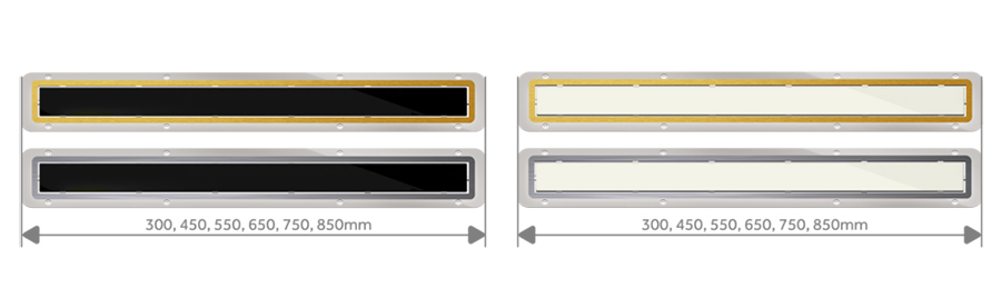 Peštan公司其高級線玻璃型號在6個不同的長度(300毫米,為450mm,在550mm650毫米,750毫米,850毫米)和4條不同設計的格柵(黑色玻璃/不銹鋼,白玻璃/不銹鋼,黑色玻璃/金,白玻璃/金制造)。這是在1,其中在同一個系統(tǒng)模型可以與黑色或白色的鋼化玻璃或不銹鋼/金色棒中使用的2。高級型具有DN50毫米水平基座這使我們有機會具有高達48升/分鐘的流速。最低高度只有52毫米這讓我們“優(yōu)質玻璃,”沉在世界上最低的與DN50毫米輸出。